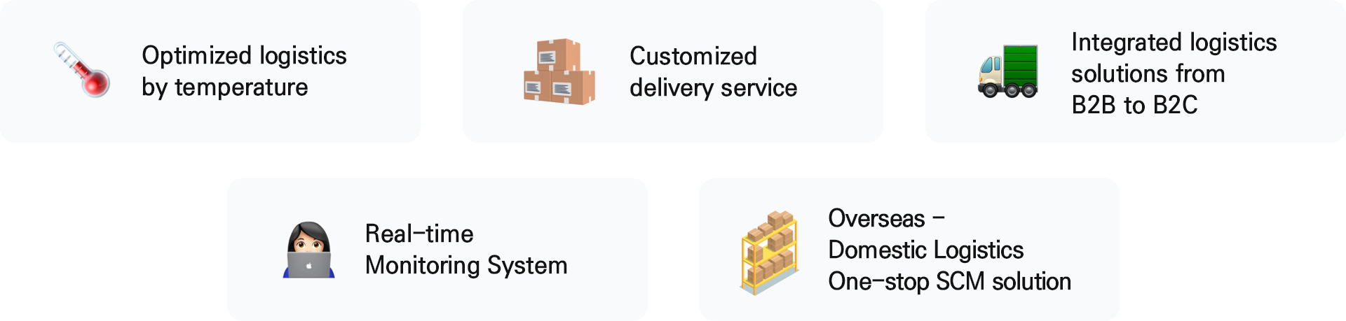 Innovate customers' logistics services by providing comprehensive services in all areas of logistics.